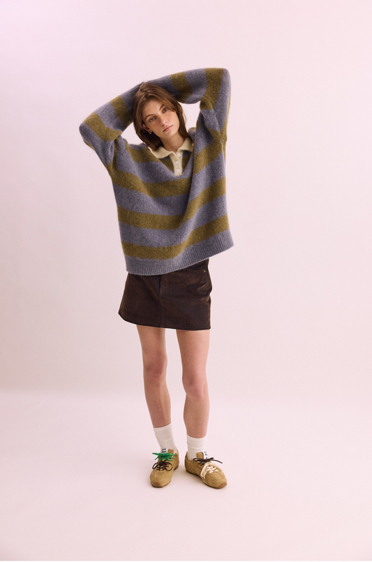 Knit Polo - Blue / Green Stripe