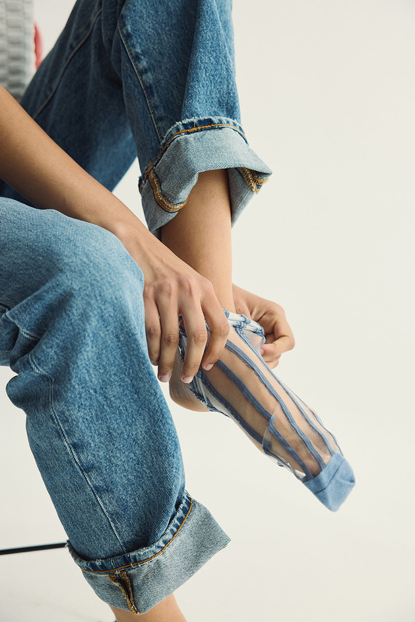 One size fits most, these cute striped mesh socks are available in 2 colours.